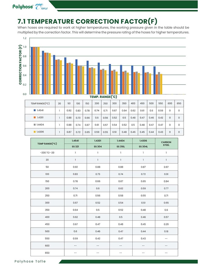 ความดันใช้งานระบุที่อุณหภูมิ 20°C หากอุณหภูมิสูงกว่านี้ ความดันจะลดลงตามตาราง Correction Factor