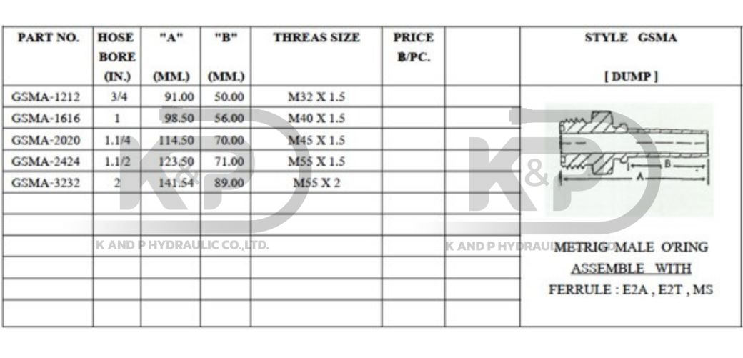 ชุดหัวสายไฮดรอลิค GSMA SETชุดเพื่อการประกอบสายไฮดรอลิคสำหรับรถบรรทุกดั๊มพ์ที่ต้องการต่อท่ออย่างถาวรและแข็งแรง โดยเป็นชุดสำเร็จที่พร้อมต่อใช้งานกับระบบไฮดรอลิคได้ทันที ลดเวลาการประกอบในหน้างาน เหมาะอย่างยิ่งกับการใช้งาน OEM หรือเปลี่ยนทดแทนของเดิม