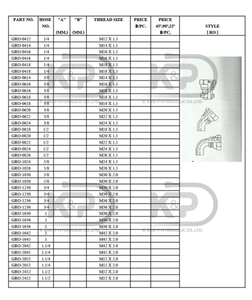 GRO (Metric Female 60° Cone – Swivel)