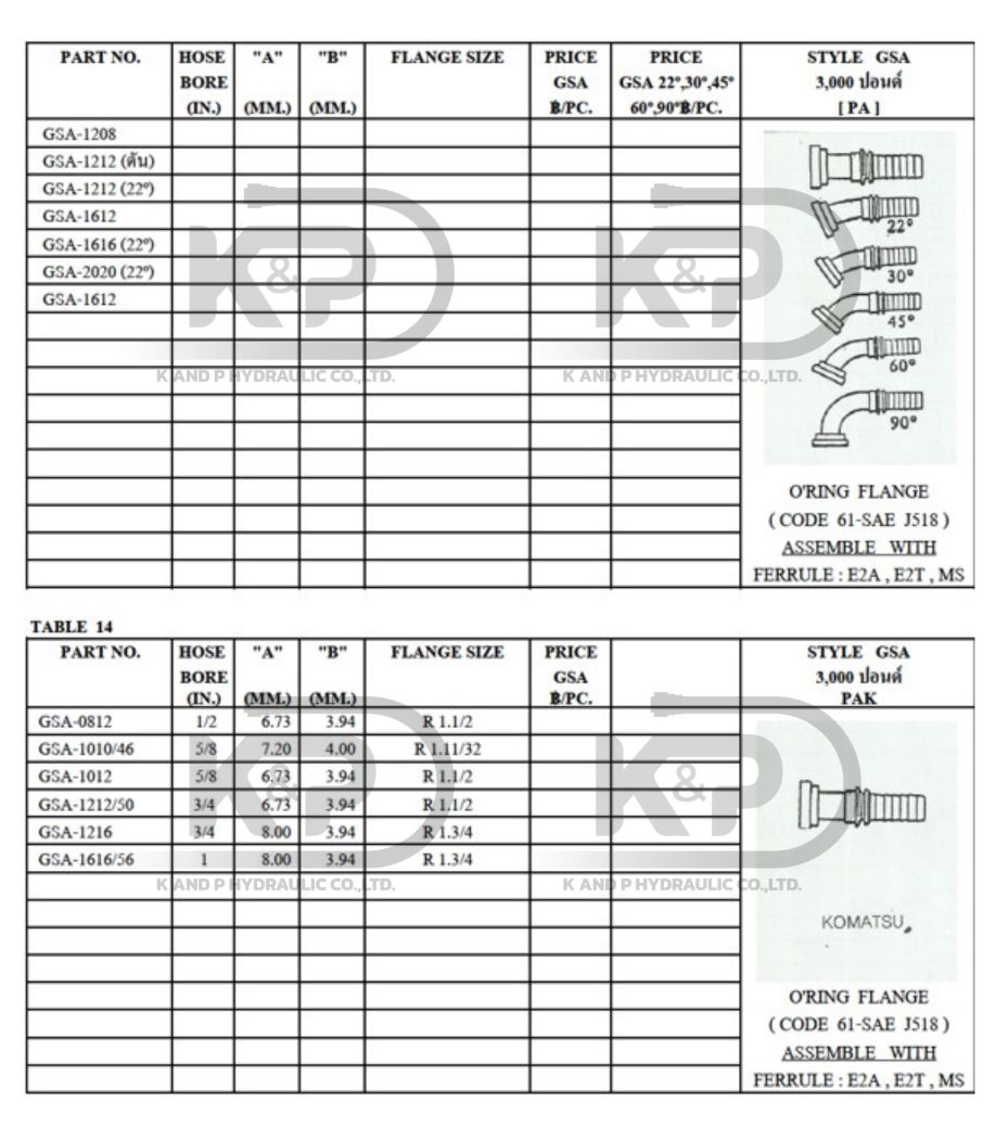 รุ่น GSA เป็นหัวสายหน้าแปลน (Flange) สำหรับระบบไฮดรอลิคแรงดันสูง มาตรฐาน SAE J518 (Code 61) รองรับแรงดันถึง 3,000 PSI เหมาะกับการประกอบกับสายไฮดรอลิคที่ใช้งานในระบบอุตสาหกรรม เช่น ระบบส่งกำลัง, เครื่องจักรกลหนัก, และระบบอัตโนมัติที่ต้องการความปลอดภัยสูงในการซีล