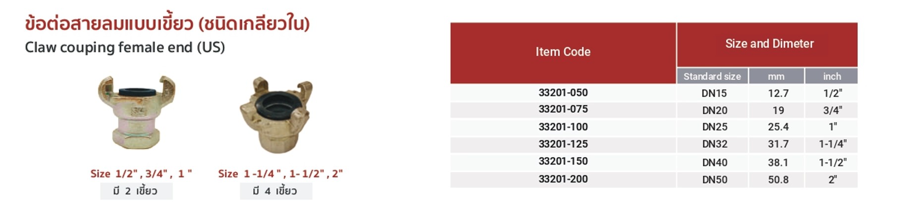 | ขนาด (Size) | ขนาด 1/2", ขนาด 3/4", ขนาด 1" |